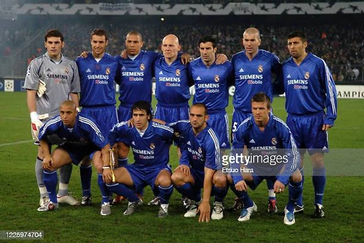 Синий цвет один из основных на гербе лос бланкос, и формы с этим цветом были не редкостью для Реала, но так гармонично с полосками Adidas они не смотрелись до этого никогда. Кроме этого надпись Siemens Mobile делает болезненный укол ностальгии. Даже Рауль Браво смотрится в этой форме хорошо, а что сказать про Зидана и Бекхема.