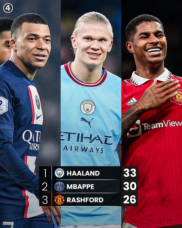 Тем самым он вывел себя на первое место в списке бомбардиров сезона, обойдя Мбаппе. Рэшфорд - третий.