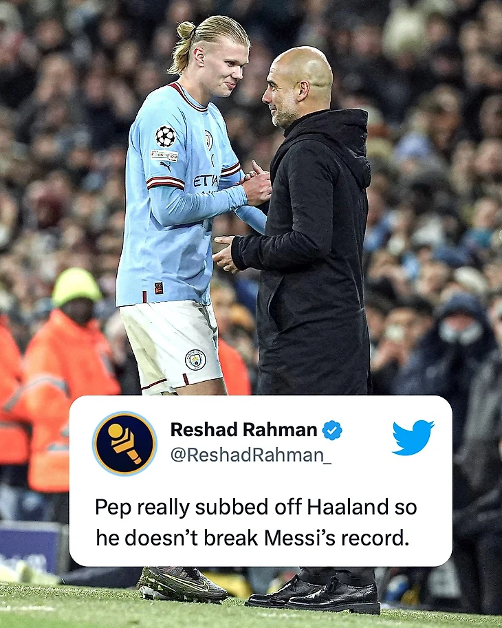 Болельщики уже шутят, что Пеп заменил Холанда, чтобы тот не побил все рекорды Месси в одном матче.