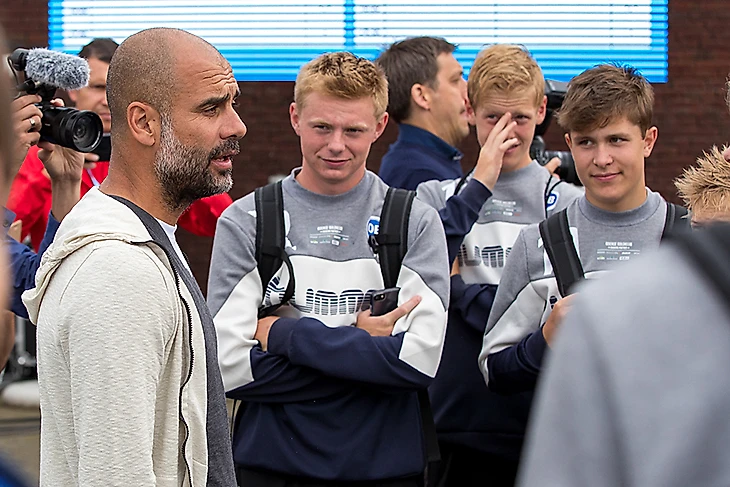 В 2018-м Де Брюйне привез в Бельгию даже Пепа. Вот Гвардиола наставляет молодых ребят датского «Оденсе».