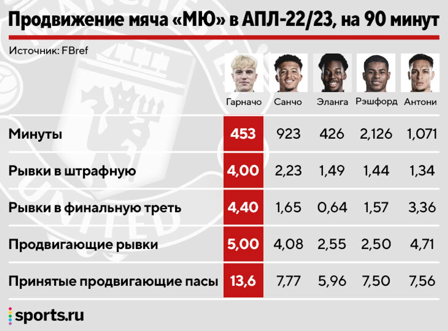 Гарначо – результат здорового подхода тренерского штаба к молодым игрокам. Играет не так часто, но если выходит, то приносит максимальную пользу. Очевидно, что с увеличением игрового времени эффективность немного просядет, но у Гарначо есть талант, чтобы дать «МЮ» не только технику и скорость.