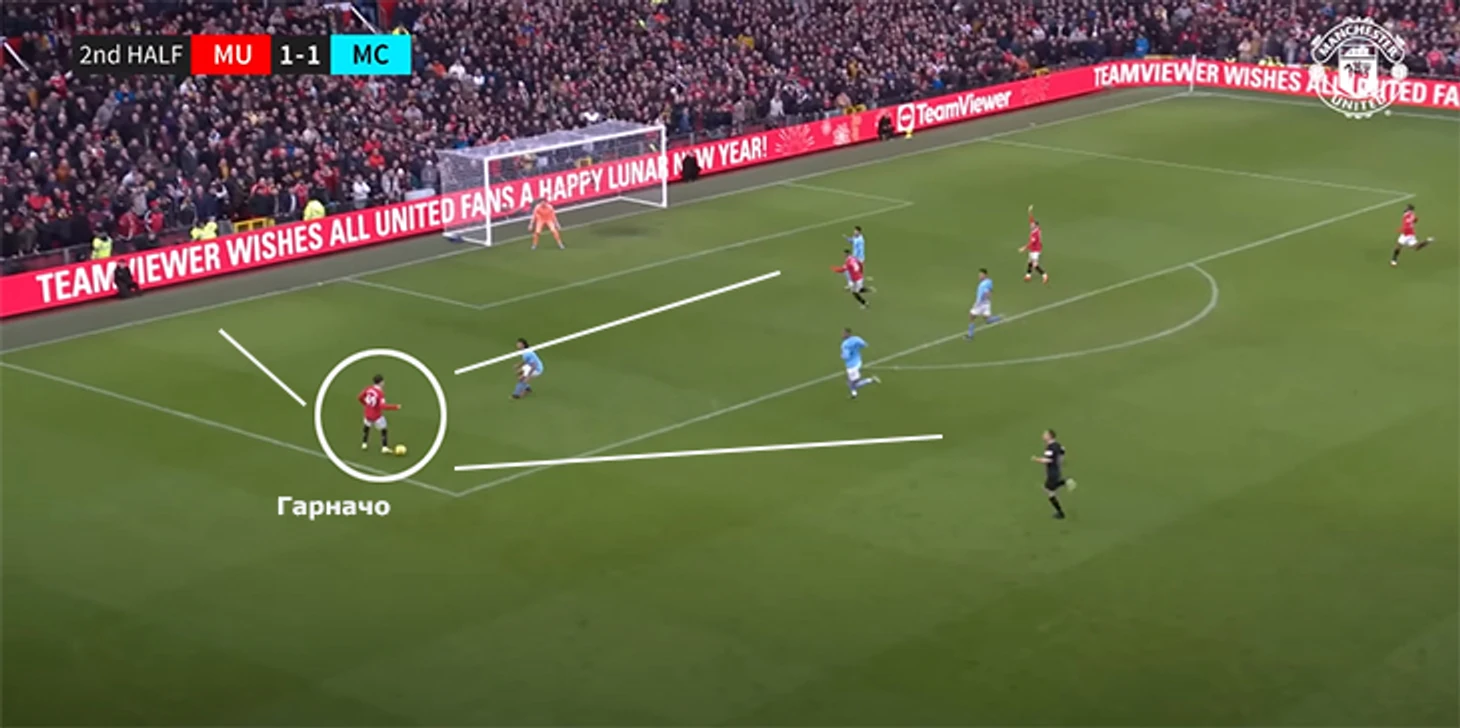 Но постоянно брать на себя игру Гарначо еще не готов. Вот пример из дерби с «Ман Сити»: много времени и свободного пространства – и странное помутнение.