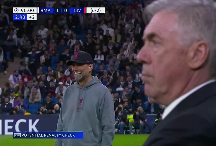 Карло Анчелотти рассказал, что они с Клоппом обсудили одиннадцатиметровый в ворота «РБ». Оба тренера сочли решение VAR неверным. В концовке встречи «Мадрида» и «Ливерпуля» арбитр долго пересматривал эпизод с попаданием мяча в руку Цимикаса. Снаряд отскочил от ноги Костаса ему в руку.