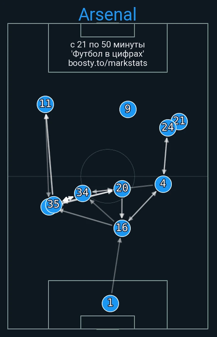 Потенциальная уязвимость такого расположения – свобода латералей соперника. «Арсенал» почти не проверял нужные зоны – Уайт играл как дополнительный центральный защитник, а Зинченко уходил в опорную.