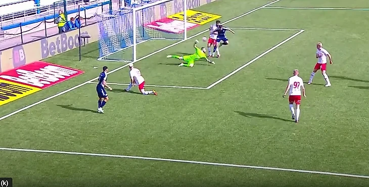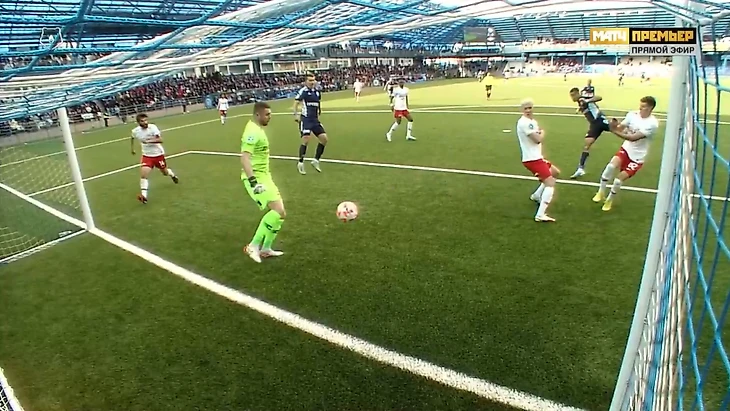 Воробьев, опередив Александра Селихова, пяткой переправил мяч в сетку!