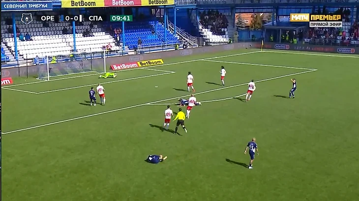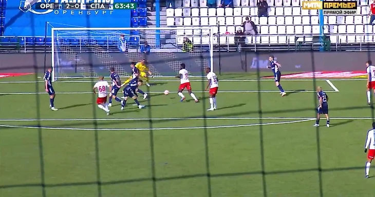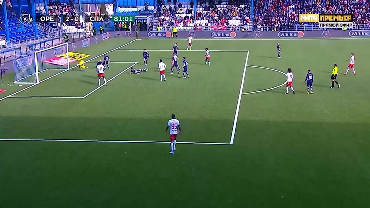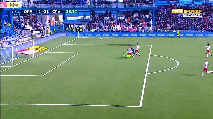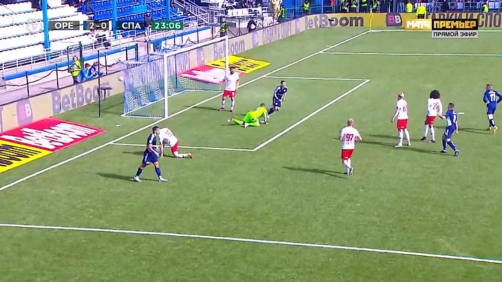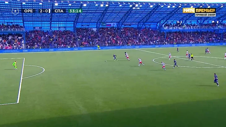 Позиционно неправильно играют в обороне футболисты Спартака и тут же Оренбург проводит опасную атаку Не воспользовался Оренбург хорошей возможностью создать угрозу воротам Спартака. Момент был очень хороший замешкались игроки.