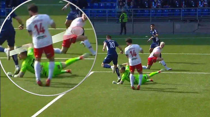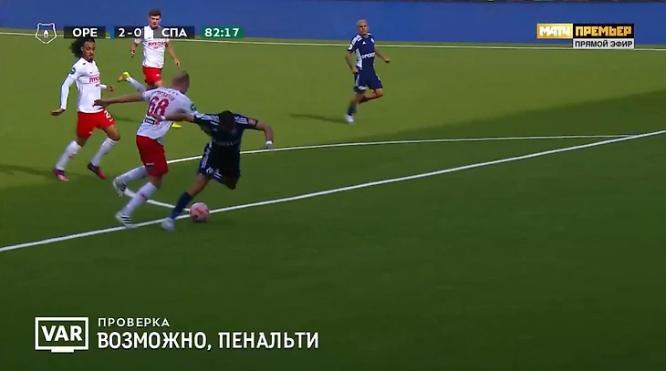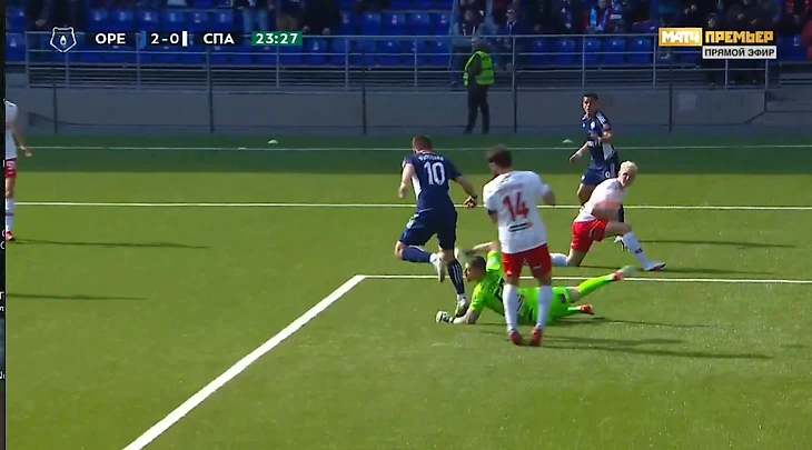 Брайан Мансилья на скорости ворвался в штрафную, там его встретил Руслан Литвинов, нападающий "Оренбурга" упал после контакта с защитником, мяч отскочил на пустые ворота, а Лукас Вера умудрился пробить выше цели!