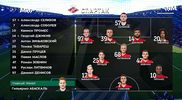 Ничего путного не получается футболистов Спартака, команда не знает как атаковать, что делать, какие-то непонятные передачи, какие-то хаотичные движения футболистов, ничего не подготавливается, ни диагоналей, ни фланговые атаки. Да "большой" специалист Гильермо Абаскаль.