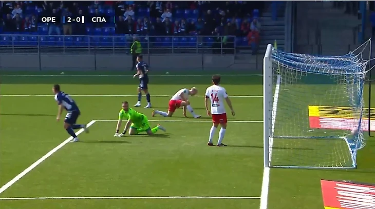 Лукас Вера из центрального круга низом выдал великолепный пас на Юрия Ковалёва, так что у того случился чистейший выход один на один с Александром Селиховым. Белорусский полузащитник перебросил не только голкипера "Спартака", но ещё и ворота. Повезло гостям.