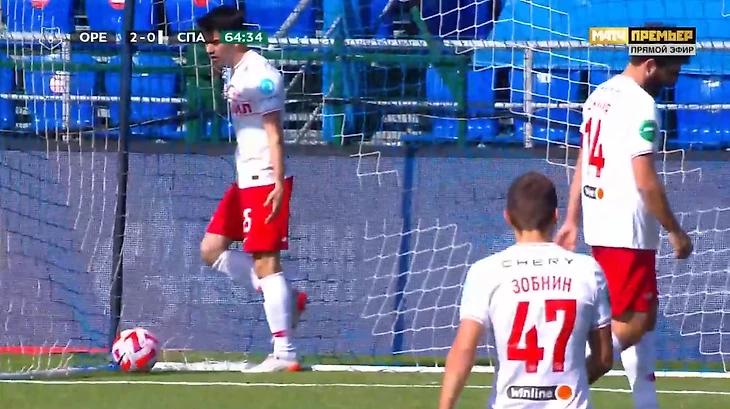 Оренбург уже не так резво идёт высокий прессинг видимо футболисты уже под устали. Тем не менее игроки Спартака не находят правильного выхода даже из такого плохого прессинга и теряют мяч. Прошло уже 10 минут игры Обе команды играют примерно одинаково.