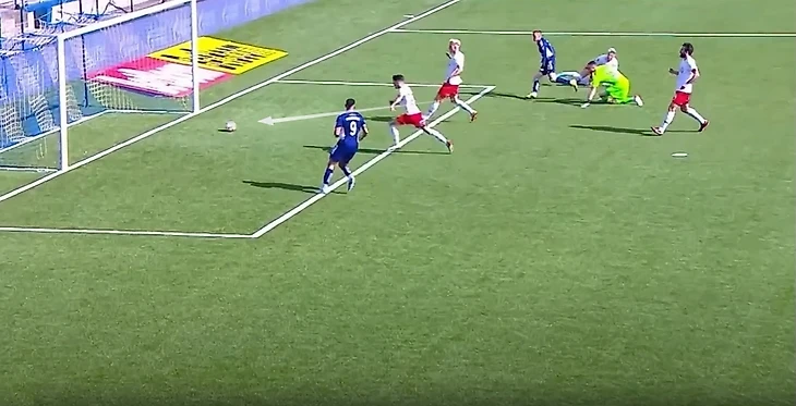 Роман Зобнин забросил мяч в штрафную, откуда Александр Соболев головой сбросил мяч на Шамара Николсона, тот вывел на ударную позицию Руслана Литвинова, который классным ударом в одно касание совсем немного не попал в дальний угол!