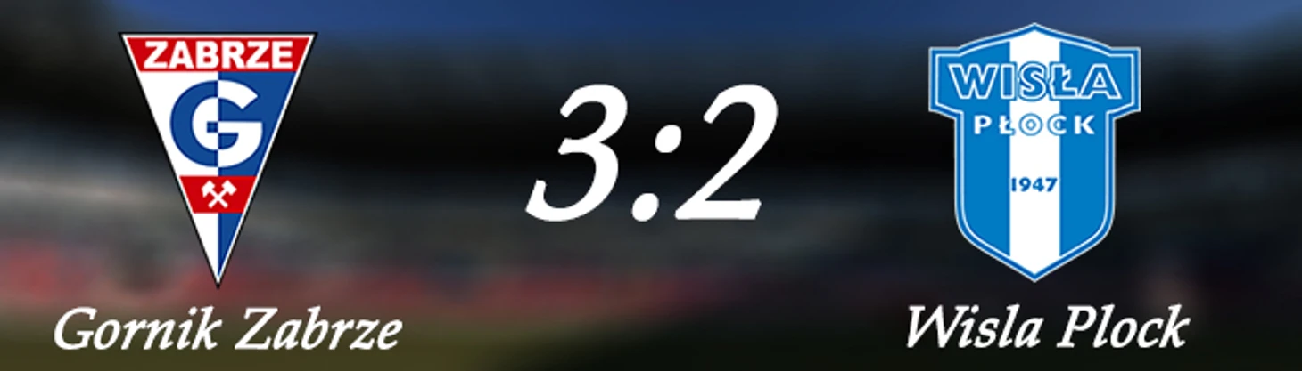 С первых минут забжане прижали соперника к воротам. Было заметно, что матч действительно крайне важен для хозяев. За первые пятнадцать минут «трёхцветные» десять раз пробили по воротам Каминьского, но все попытки были неудачными. Вратарь «Вислы» справился с ударами Подольского и Йокоты. Первая же атака гостей стала голевой. В быстрой контратаке плоччане заработали штрафной, который реализовал Швох. Пропущенный мяч после такого активного начала негативно повлиял на забжан, которые не могли прийти в себя. А в самом конце первой половины игры «Висла» удвоила перевес в счете. Коцылу вывели один на один с Белицой, а 20-летний полузащитник отметился вторым голом в чемпионате.