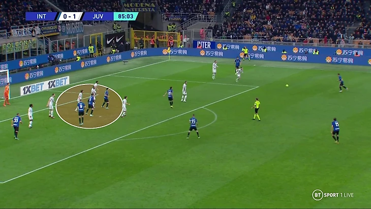В этих перестроениях был смысл. «Юве» садился все глубже, а «Интер» почти не получал пользы от лишнего центрального защитника (часто он подключался в атаку вдоль фланга по ходу эпизода). Теперь у команды Индзаги вместо этого игрока появилась дополнительная угроза в штрафной: