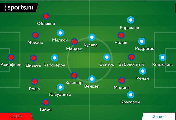 «Зенит» приехал в Москву без Ивана Сергеева и Андрея Мостового, а игра с «Динамо» показала невероятную важность Вильмара Барриоса. В Кубке России Сергей Семак передвинул Далера Кузяева на позицию шестерки, а выше сыграли Вендел и Клаудиньо (так было и против «Химок»), но перед ЦСКА решился на новые изменения: Дуглас Сантос перешел в опорную зону (обеспечило место слева в защите Данилу Круговому), а Клаудиньо вернулся на позицию вингера.