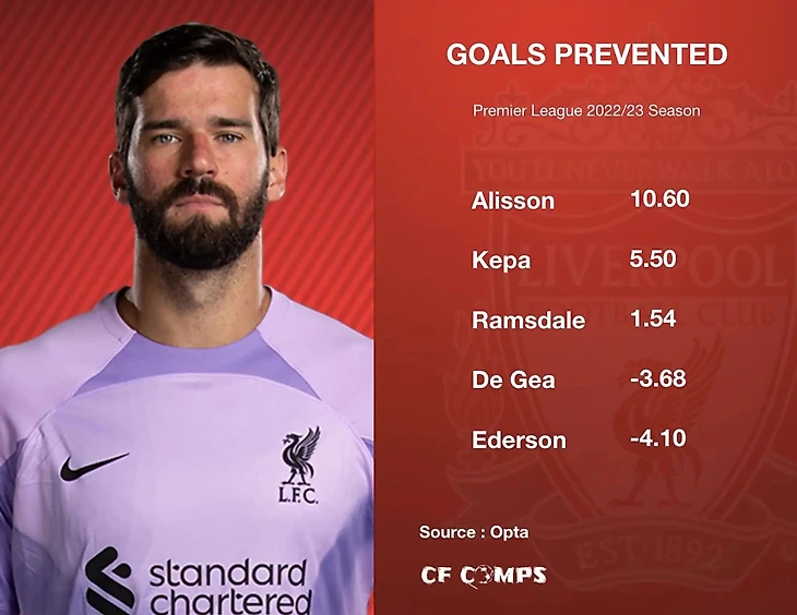 Согласно статистике Opta, бразилец предотвратил 10,6 голов — другими словами, «Ливерпуль» мог пропустить на 10 или 11 голов в Премьер-лиге больше, чем пропустил.