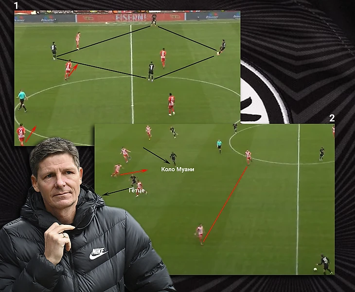 «Айнтрахт» так и не воспользуется преимуществом своей структуры, а пропустив мяч, будет форсировать события, все меньше атакуя через позиционную атаку.