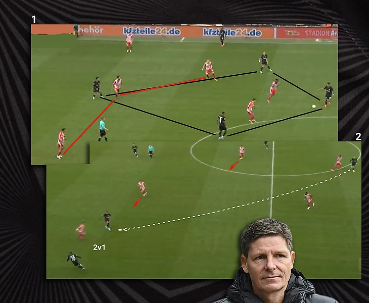 Оливер Глазнер, главный тренер «Айнтрахта», выставил схему 3-4-2-1 против 5-3-2 в исполнении «Униона» Урса Фишера.