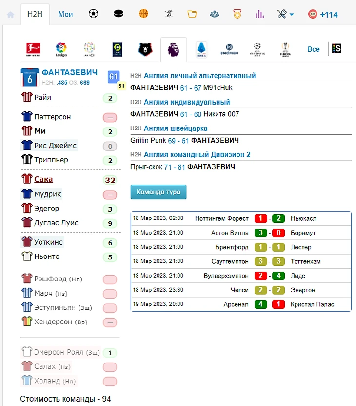 Но и здесь англичане ушли вперед - платформа позволяет создавать Head-to-head соревнования. Для тех, кто не знает, H2H - это турнир, в котором каждый тур играется против определенного человека, который как и вы собрал свою команду. По окончании тура победу одерживает игрок, чей состав набрал больше очков. По желанию такую лигу можно оснастить плей-офф.