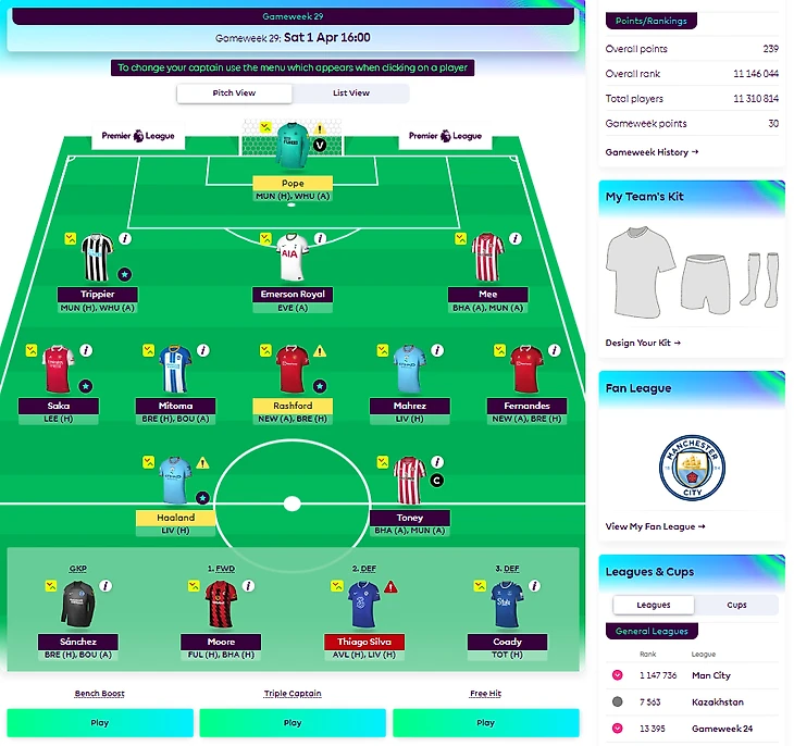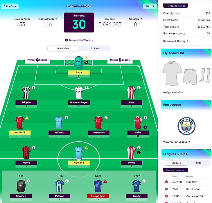 Как и на спортсе, в FPL, помимо глобальной таблицы из всех игроков, можно создавать Лиги друзей и участвовать в Общественных Лигах по какому-то признаку (болельщики одного клуба, представители страны).
