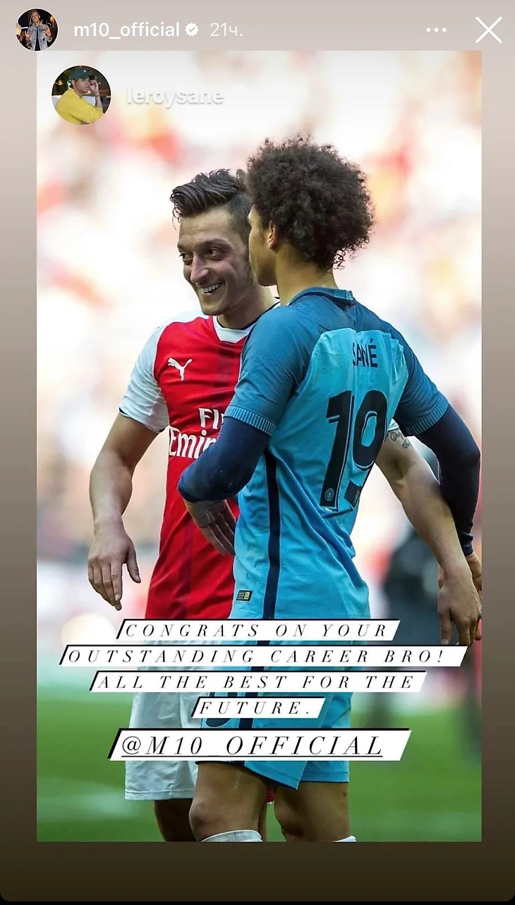 Лерой Сане: «Поздравляю с твоей выдающейся карьерой, бро! Всего самого лучшего в будущем».