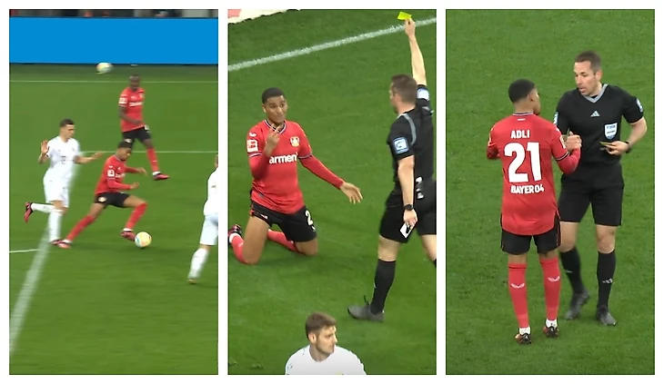 На 53-й минуте Бенжамен Павар наступил на ногу Амину Адли, но судья вместо пенальти показал игроку «Байера» желтую за симуляцию. И лишь после просмотра отменил желтую, пожал руку Адли и указал на точку.