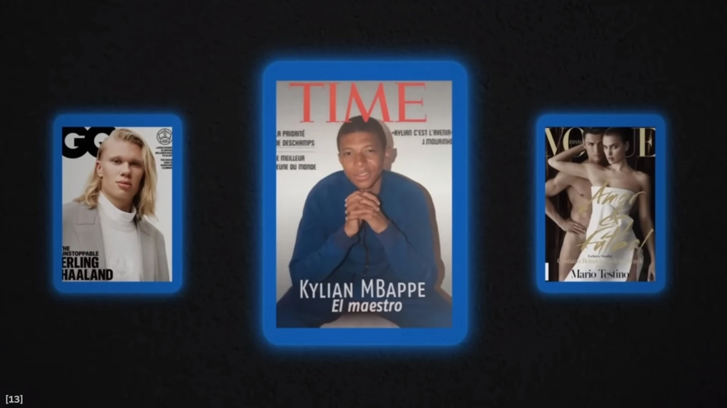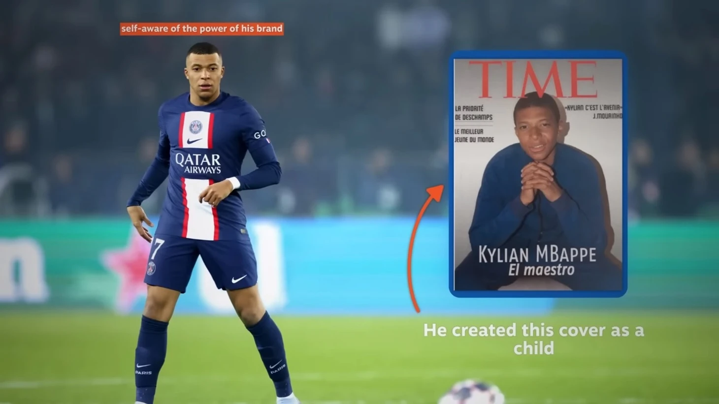 В 15 лет Мбаппе и его одноклассникам по академии «Монако» было предложено создать обложку журнала с собственным изображением. Вместо того чтобы изобразить себя на обложке журнала «GQ» или «Vogue», как это сделали многие его одноклассники, Мбаппе создал макет обложки журнала «TIME». Заголовок, набранный жирным белым шрифтом, гласил «El maestro». Четыре года спустя он появился на обложке настоящего журнала «TIME» ...