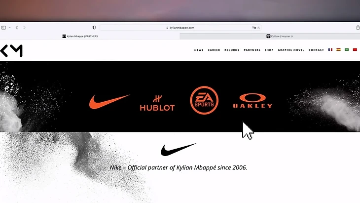 Компания имеет свой сайт, магазин, модный бренд и издательство под именем Килиана Мбаппе. Именно на его сайте можно найти первый бизнес-урок, который стоит извлечь из бренда Мбаппе. Стоит взглянуть на список его партнеров. Избранная группа из четырех представителей: «Nike», «Hublot», «EA» и «Oakley».