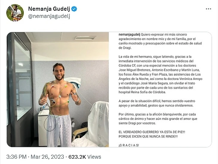 Гудель — младший брат звезды «Севильи» Немани Гуделя, который сообщил последние новости о состоянии здоровья брата.