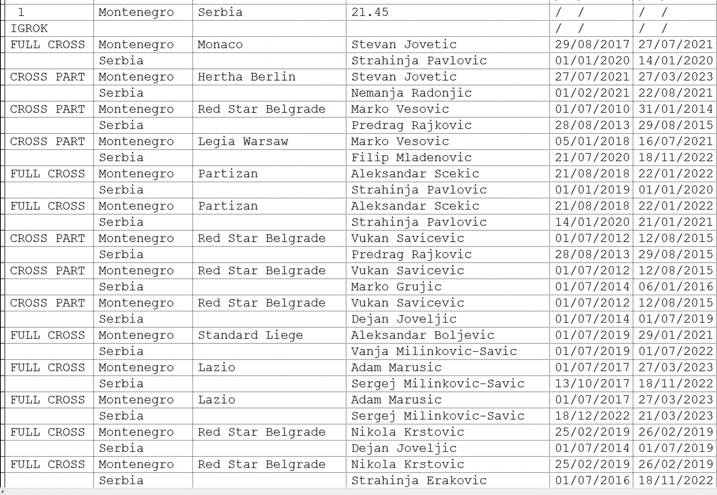 Вашему вниманию предоставляется информация 1.игроки выступали в прошлом за клуб-соперник. 2.Соперники играли за один и тот же клуб (возможно в разное время- NO CROSS)