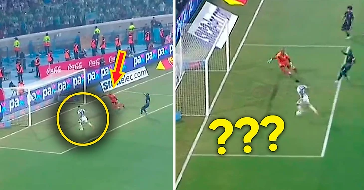 Оказавшись перед пустыми воротами, Мартинес вместо удара запнулся об мяч.