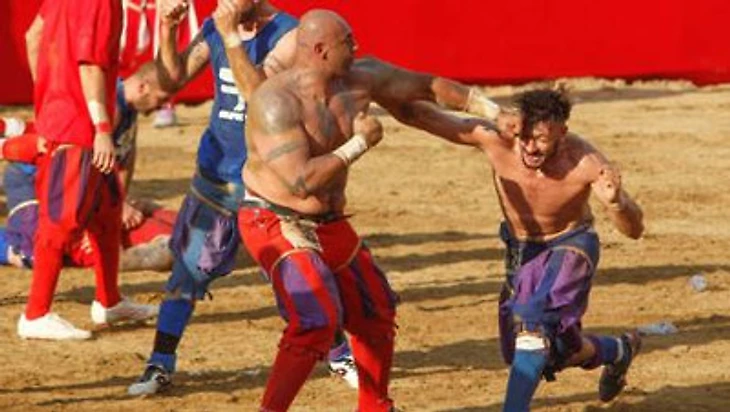 Самый известный матч произошел 17 февраля 1530 года, когда в осажденной войсками императора Карла Пятого Флоренции, люди в знак своей непокорности и бесстрашия перед лицом смерти, сыграли в мяч на площади Санта-Кроче. И пусть Флоренция позже была захвачена, но та игра стала символом свободолюбия местных.