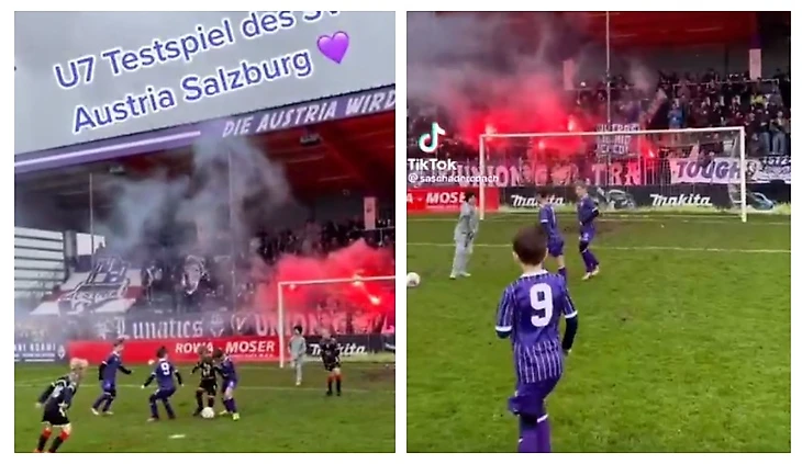 Фанаты «Зальцбурга» устроили детишкам праздник: заполнили трибуны на матче 7-летних мальчишек и устроили настоящий перфоманс🎆🎇🧨