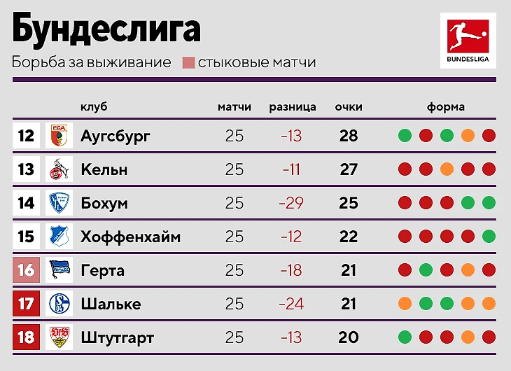 • «Шальке» – 17-й, хотя набрал 12 очков в 10 матчах после чемпионата мира. Спастись будет тяжело: в последних трех турах – «Бавария», «Айнтрахт» и «Лейпциг».