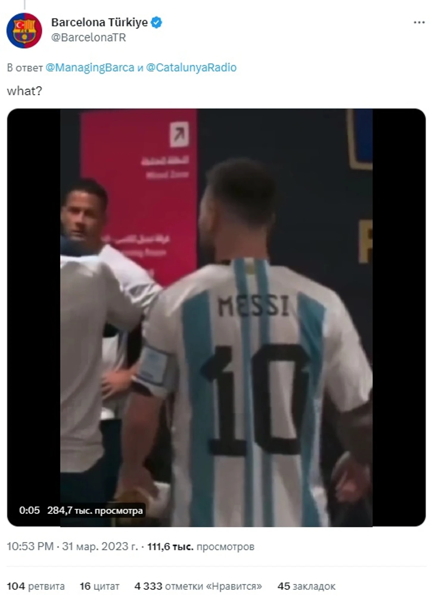 Турецкий аккаунт «Барселоны» тоже решил опровергнуть утверждение каталонского радио, опубликовав видео встречи Дембеле и Месси в подтрибунном помещении: