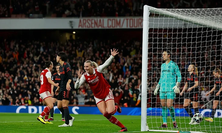Ответный матч на «Эмирейтс» начинается с атак «Арсенала». Дерзкая ставка от Джонаса Эйдевала – ротация позиции Лии Уильямсон. В первой игре она играла центральным защитником, в ответной играет шестерку, поднимаясь в центр и помогая разгонять атаки против стены «Баварии». Это изменение оправдывается, когда «Арсенал» на 19 минуте сооружает невероятный гол в девятку, а голевая летит в статистику Уильямсон. «Арсенал» буквально съел «Баварию», не оставив им шанса. У немок итоговый xG 0.3, а их единственный удар в створ спокойно заблокировала защитница Вуббен-Мой.