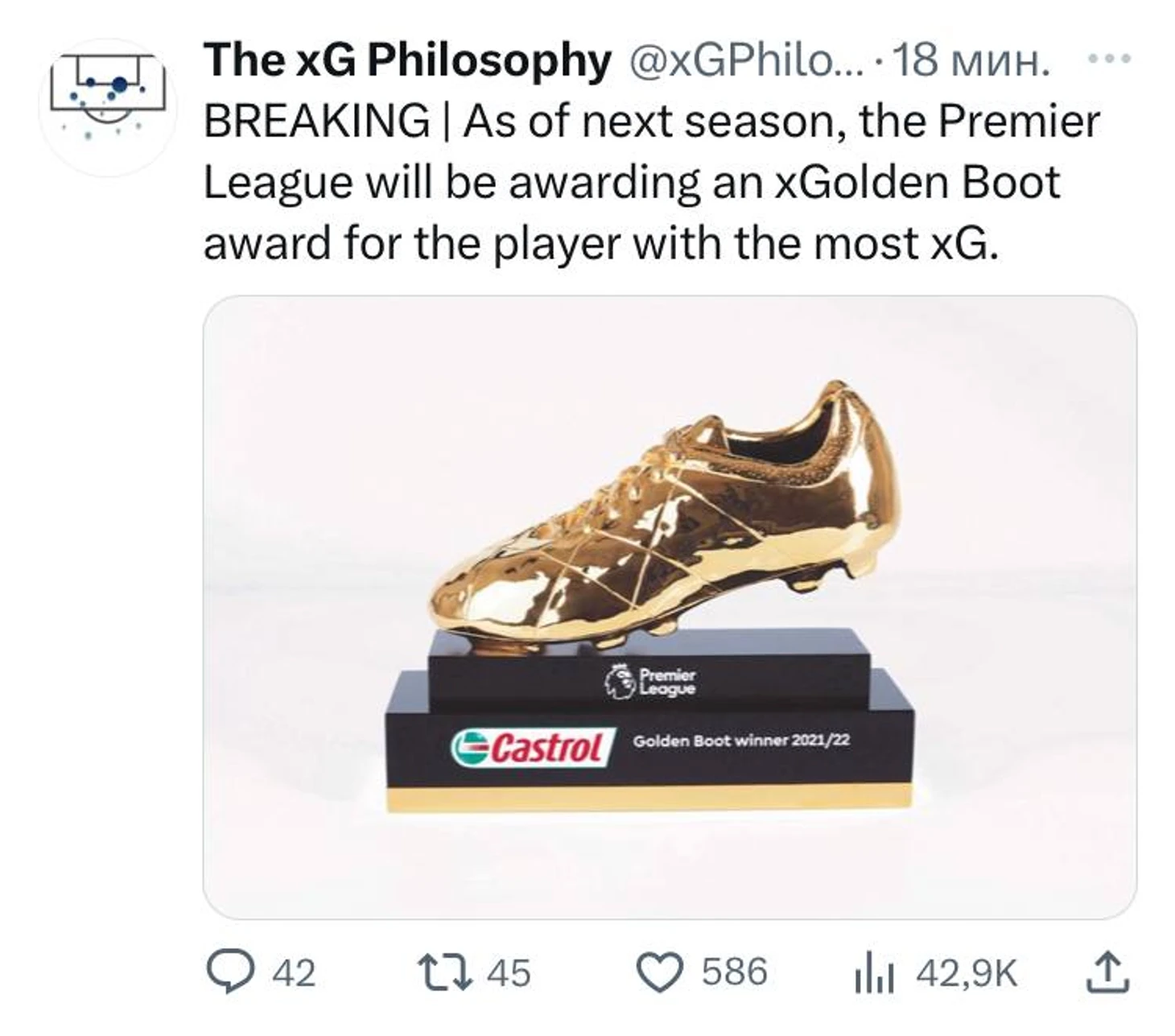 А вот и продвинутые шутки – со следующего сезона АПЛ будет награждать «xЗолотой бутсой» игрока, который набил больше всего xG.