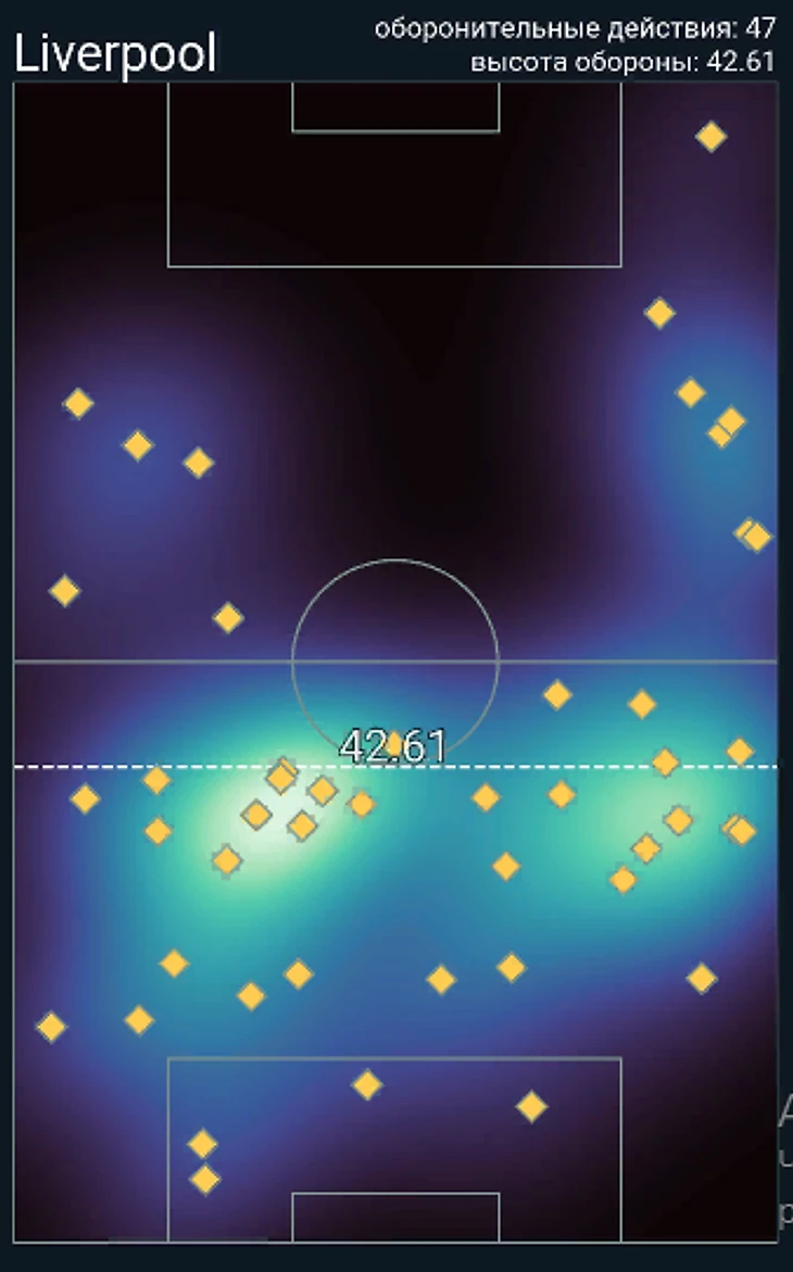 Высота линии обороны «Ливерпуля» в этом матче составляла 43 метра от ворот. Большинство оборонительных действий было совершено на своей половине поля.