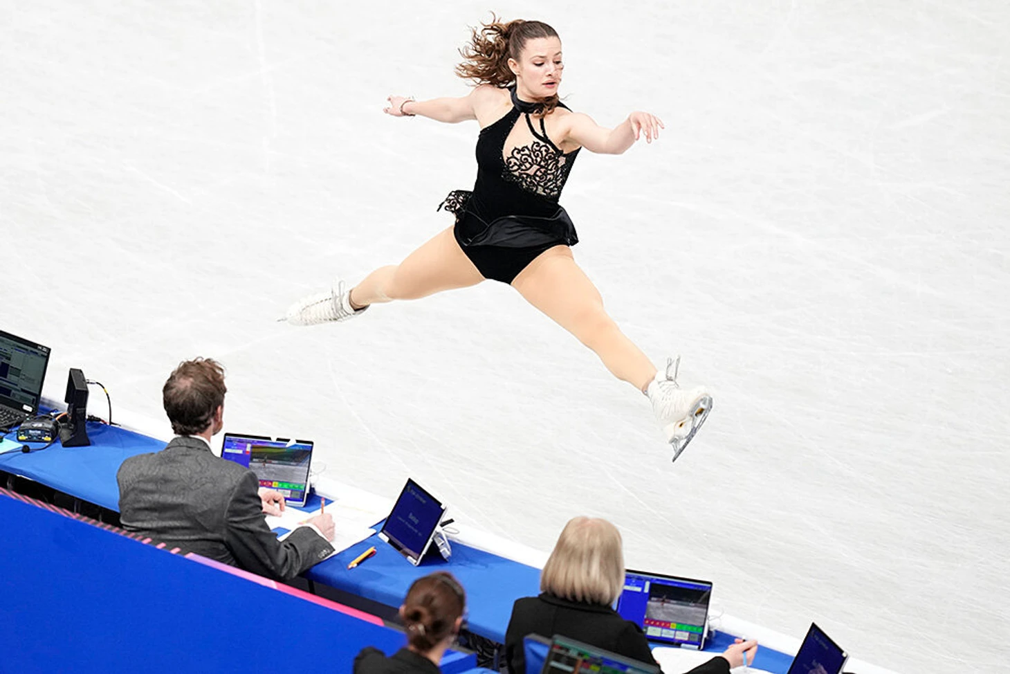 22 марта. Бельгийка Кристен Спурс на ЧМ по фигурному катанию демонстрирует таланты предельно близко к судьям.