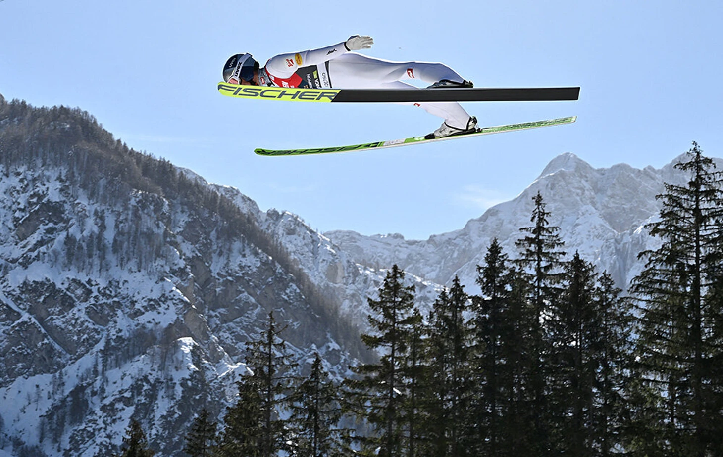 4 марта. Австрийский двоеборец Йоханнес Лампартер пролетает над волшебными пейзажами Словении.