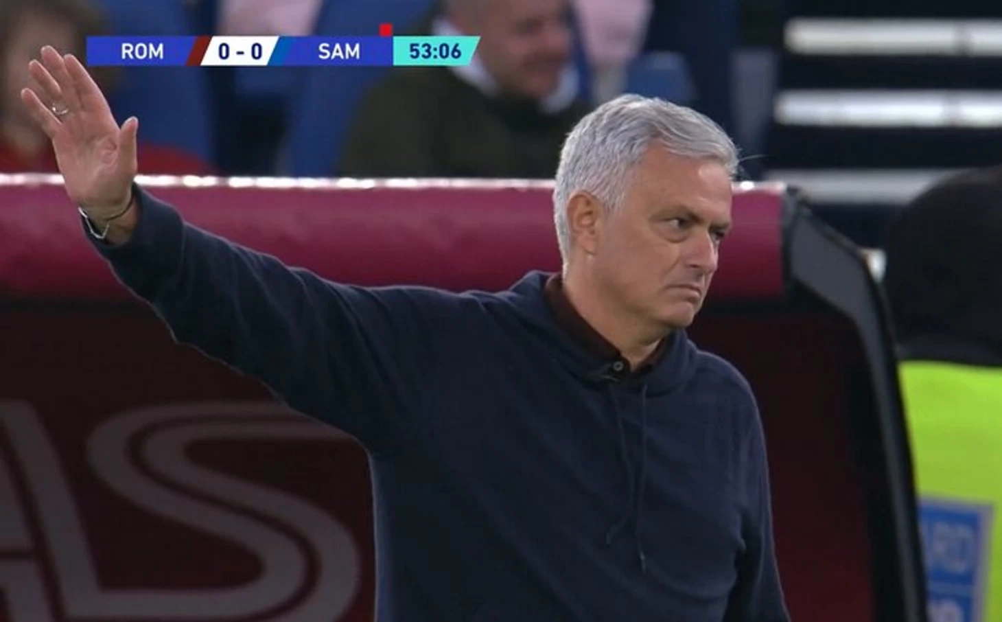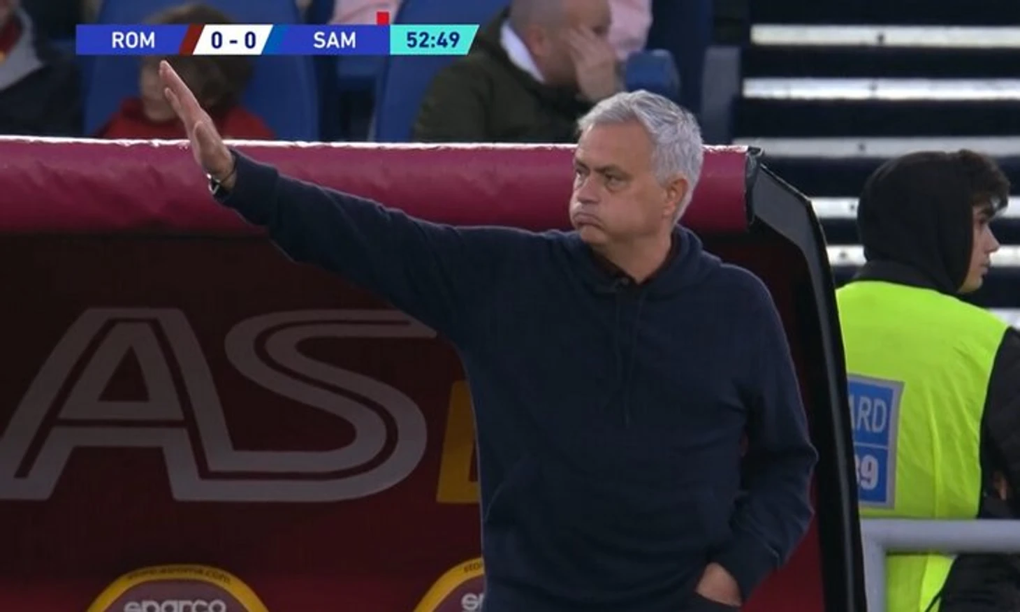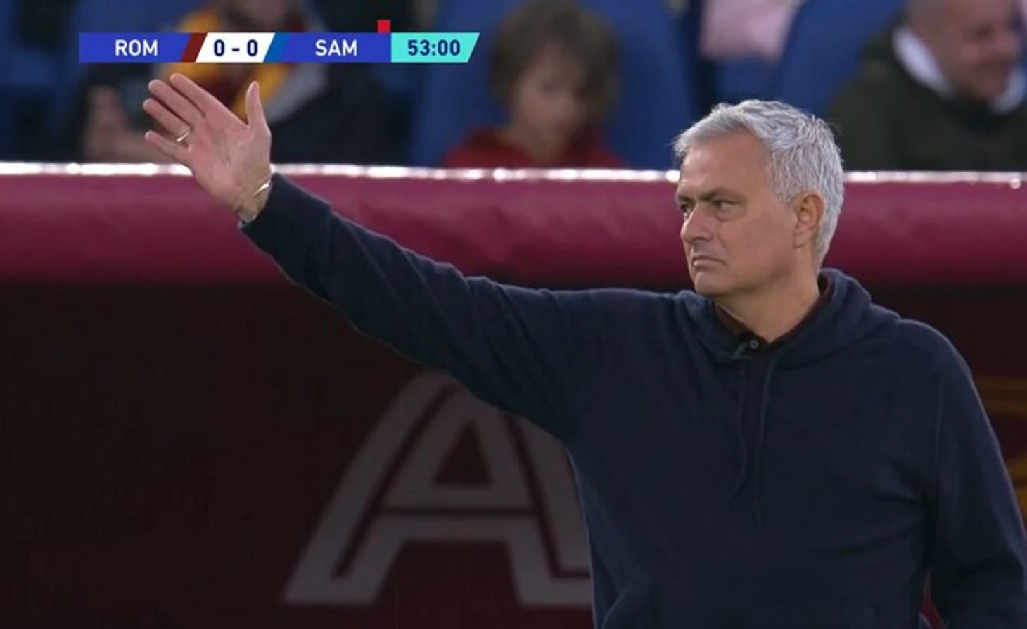Жозе Моуринью поднялся с места и призвал фанатов успокоиться.