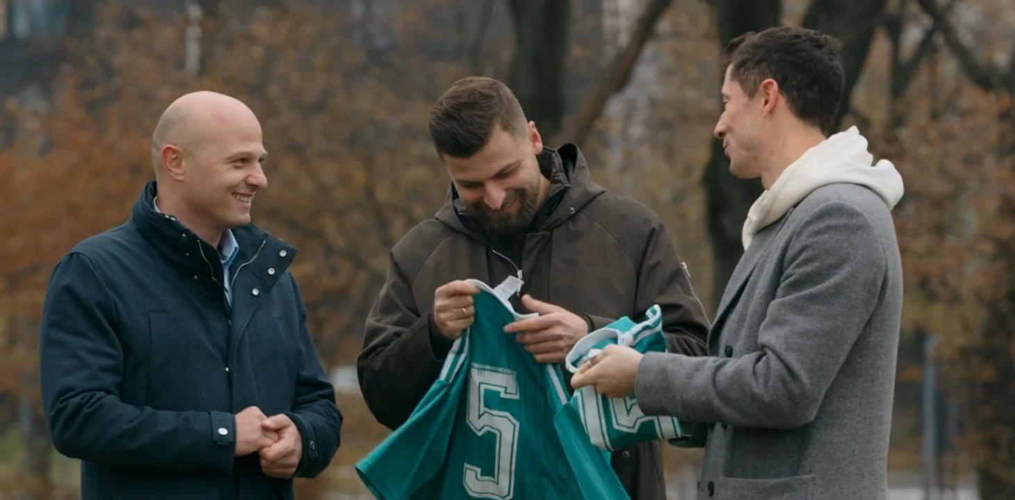 «Желаю тебе стать супербогатым футболистом и играть в Серии А. Чтобы ты зарабатывал кучу денег и содержал своего отца, когда он состарится. Роберт Левандовски – лучший игрок в Европе. Если продолжишь тренироваться – так и будет», – говорит Кшиштоф перед камерой, обнимая и целуя Роберта.