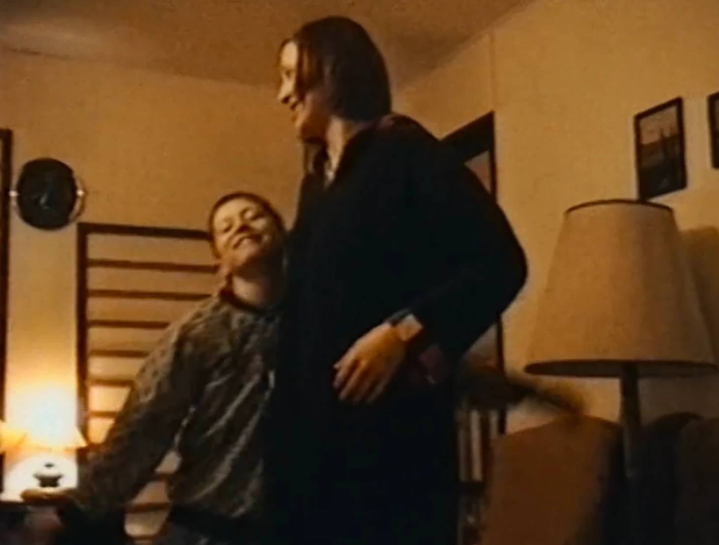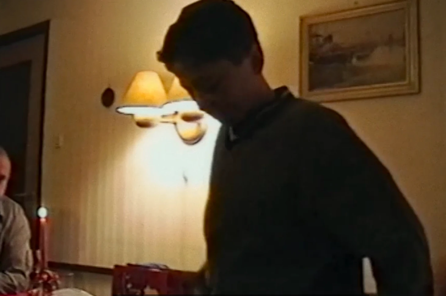 Вот, например, кадр из семейного видео, где мама дарит Роберту свитер на вырост. А голоса на фоне обсуждают обновку.