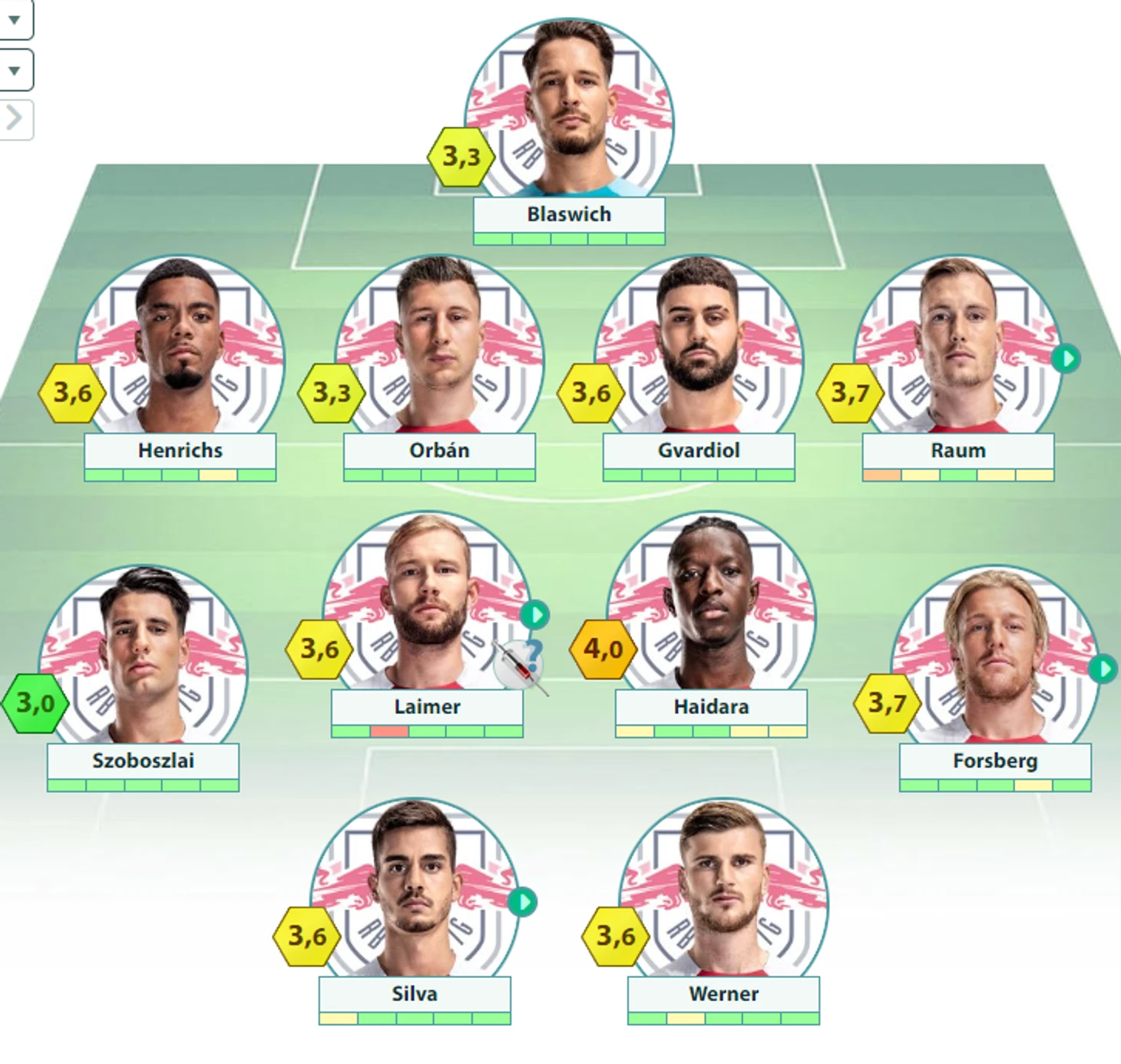 «РБ Лейпциг»: Бласвих – Хенрикс, Орбан, Гвардиол, Раум – Лаймер, Айдара – Собослаи, Ольмо, Вернер – Силва