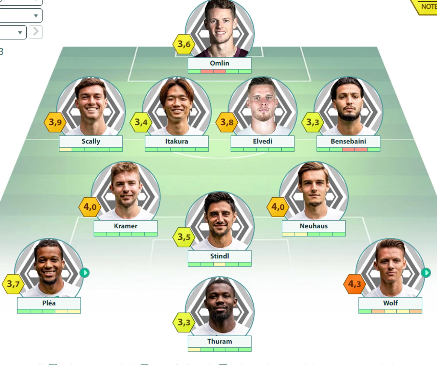 «Боруссия» Менхенгладбах: Омлин – Скалли, Итакура, Эльведи, Бенсебайни – Крамер, Нойхаус – Хофманн, Штиндль, Плеа – Тюрам