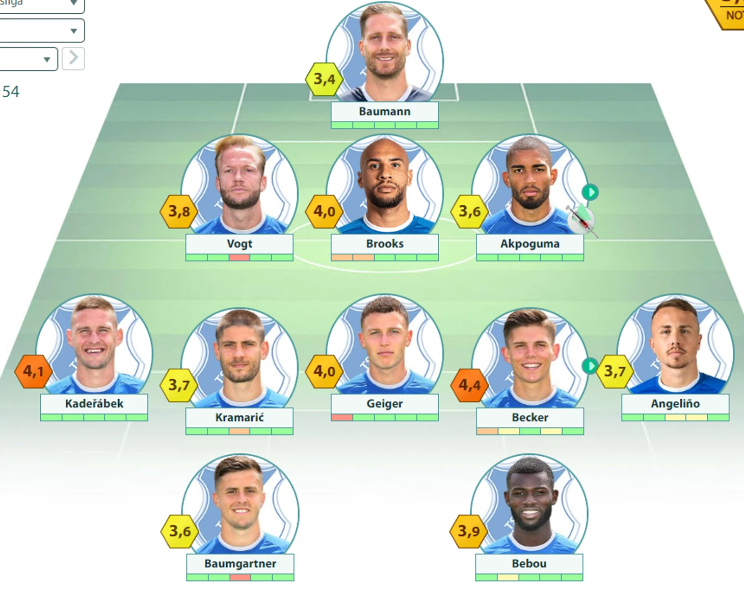 «Хоффенхайм»: Бауманн – Фогт, Брукс, Акпогума – Кадержабек, Гайгер, Беккер, Анхелиньо – Баумгартнер – Бебу, Крамарич