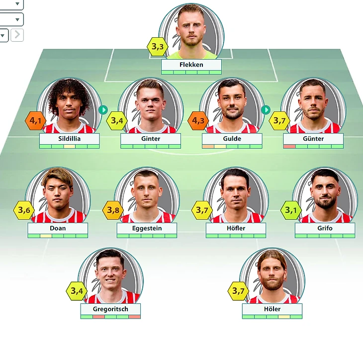 «Фрайбург»: Флеккен – Кюблер, Гинтер, Гульде – Сильдийя, Эггештайн, Хефлер Гюнтер – Хелер, Грифо – Грегорич