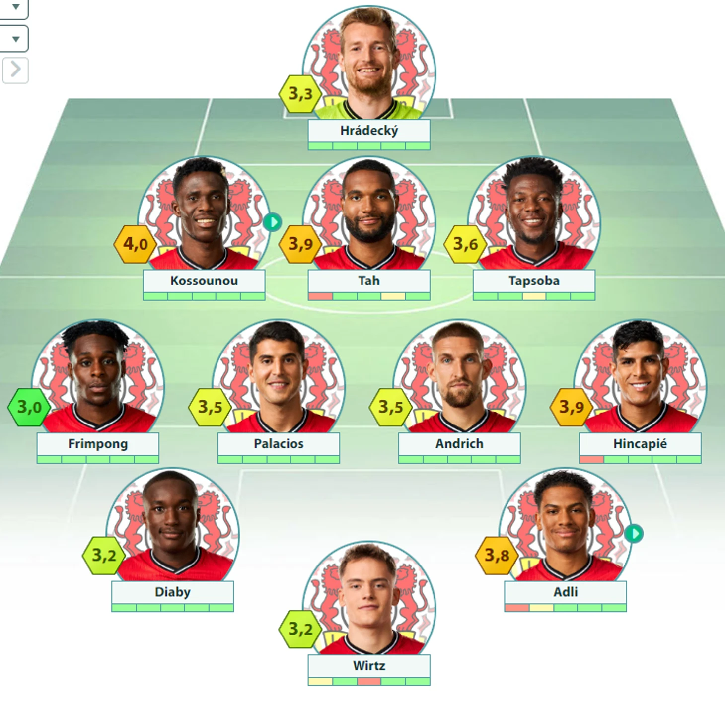 «Байер»:Градецки – Коссуну, Та, Тапсоба – Фримпонг, Паласиос, Андрих, Инкапие – Диаби, Вирц – Азмун