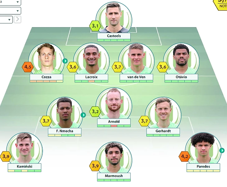 Ориентировочные составы (здесь и далее – версия Bundesliga.com – текст, версия LigaInsider.de – скрин):