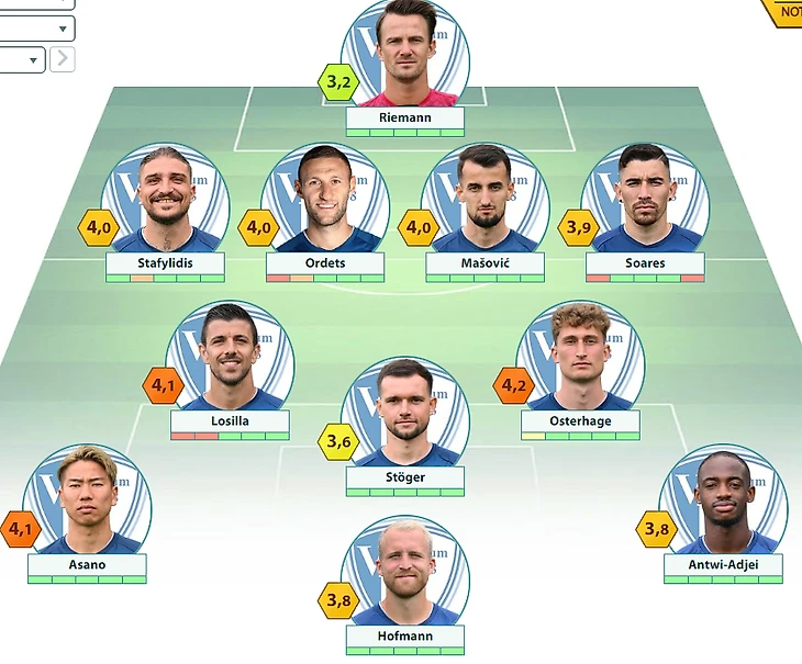 «Бохум»: Риманн – Стафилидис, Ордец, Машович, Соарес – Штегер, Лосилла, Остерхаге – Асано, Хофманн, Антви-Аджей