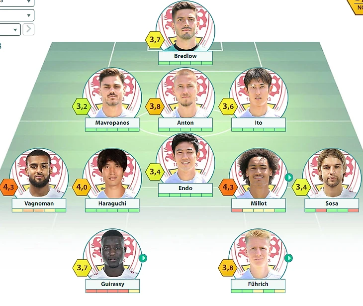 «Штутгарт»:Бредлоу –Мавропанос, Антон, Ито – Вагноман, Эндо, Каразор, Харагути, Соса – Гирасси, Силас